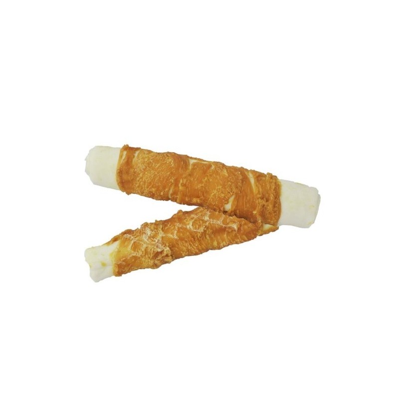 Beef hide roll with chicken, designed for long-term chewing . Made with natural ingredients and no added sugars , artificial colors, or preservatives. Highly palatable and with a firm texture to keep your dog entertained. Complementary food .