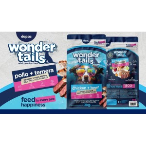 Complete dog food that combines high-quality ingredients, such as chicken and beef, to provide a balanced and delicious diet that supports your pet's overall health. With a focus on nutrition and well-being, Wonder Tails is formulated to meet the needs of active and adventurous dogs.