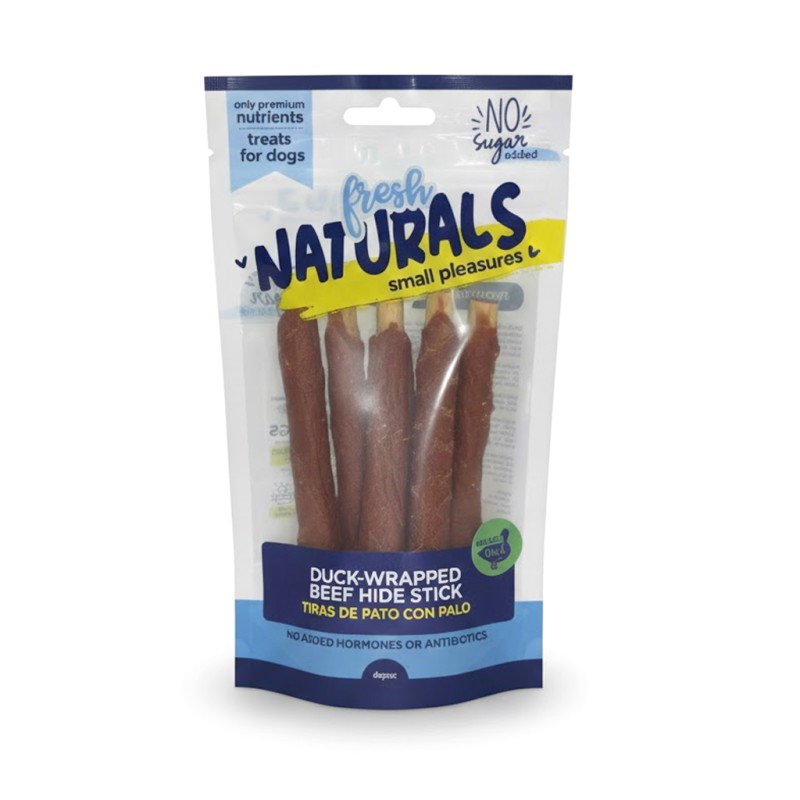 Fresh Naturals duck spread on rawhide stick Tiras de pato con palo 100gr