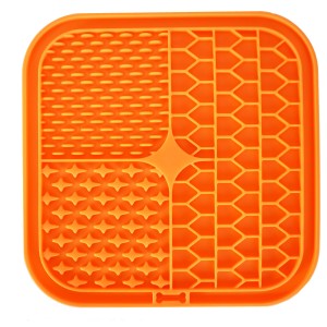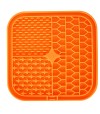 Slow feeder mat for dogs and cats. Facilitates proper digestion. Especially ideal for wet food. Promotes fresh breath and good oral health. Reduces stress, anxiety, and boredom. Colors: green and orange.
