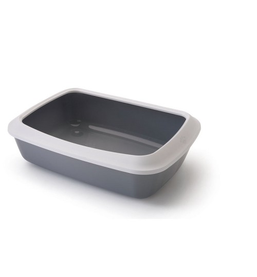 The Gizmo Medium White and Twilight Blue Toilet Litter Box is an open-sided litter box with an outer frame for improved hygiene. Its dimensions are 44 x 35.5 x 12.5 cm.