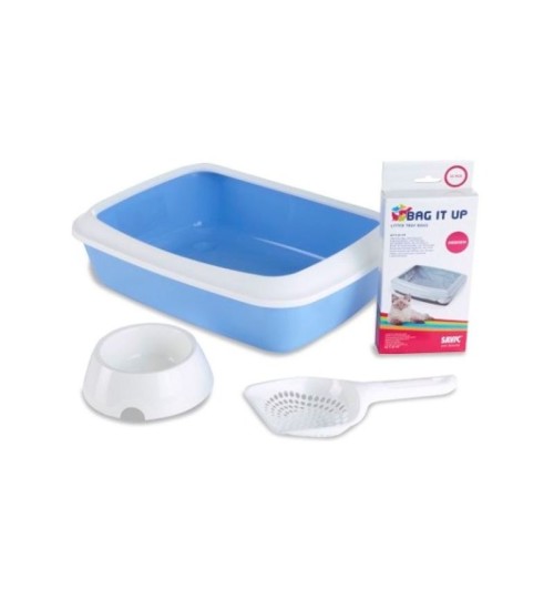Iriz 50cm stone blue cat litter box. Dimensions: 11.5x36.5x50cm (width-height-depth).