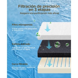 It also includes a built-in filter , which helps purify the water, removing impurities and providing clean, fresh water for your pet. Its modern, compact design fits perfectly in any space, while its system ensures efficient water distribution in the drinking area. This waterer is ideal for those looking to take care of their cat's health and well-being with a quality product.