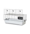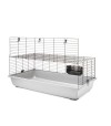 Cage for rodents, guinea pigs, and dwarf rabbits. Fully opening access hatch. Snap-fit system for removing the bottom tray. Cable spacing: 26 mm. Includes hay rack. Dimensions: 100 x 50 x 43 cm.