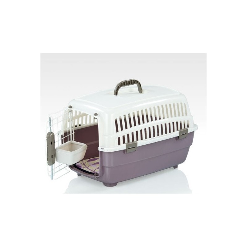 Voyager Small Lux dog and cat carrier. With handle and food bowl. Dimensions: 48 x 32 x 31 cm.