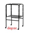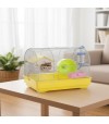 The Arosa cage is a small rodent accessory designed in yellow with blue and pink details. It's also suitable for gerbils. Its dimensions are: 33 x 23 x 26 cm.