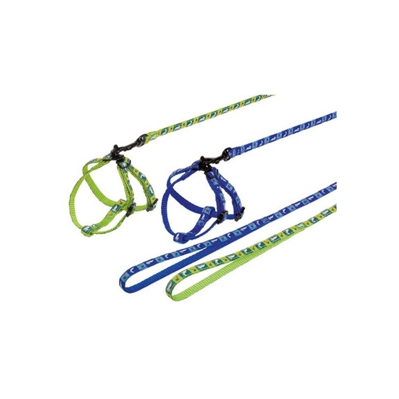 This kit, which includes a harness and leash, is an accessory designed for rabbits. The model is blue.