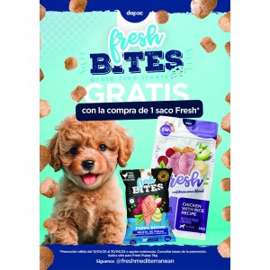 Cartel promocional Fresh Mini Sensitive + Fresh Naturals.Por la compra de un saco de Fresh Mini sensitive GRATIS un...