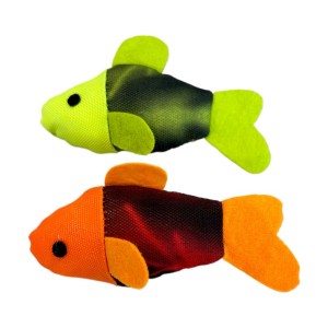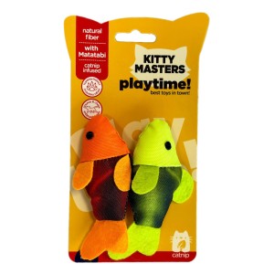 Pack 2 peces fluorescentes juguete para gatos Time to Play Kitty Masters. Con catnip. 45x38x20 cm