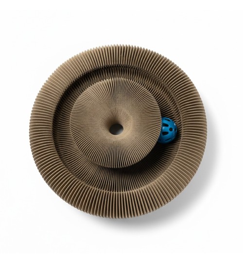 Rascador acordeón/panal de cartón reciclado para gato, plegable y catnip infused. Se puede usar con forma de donut o formas U/L/S para rascar, jugar y proteger tus muebles. Diseño ligero y fácil de guardar.