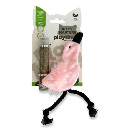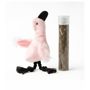 Peluche con forma de flamenco, relleno de catnip para estimular la caza indoor. Ligero y de durable fiber, con alas de pluma y patas...