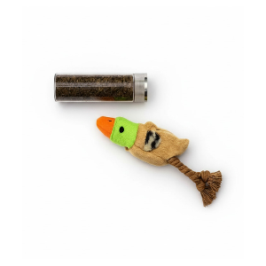 Peluche con forma de pato, relleno de catnip para estimular la caza indoor. Ligero y de durable fiber, con patas de cuerda trenzada y alas...
