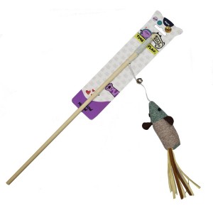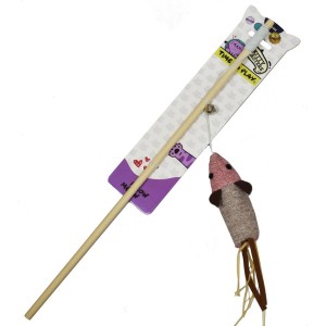 Juguete para gatos. Caña de pescar con ratón y sonajero.