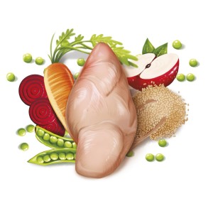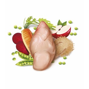 Nueva receta sin trigo. Alimento completo para cachorros de todas las razas. 80% proteína animal. 50% total pollo. 20% pollo fresco. Mínimamente procesado. Rico en prebióticos y antioxidantes.