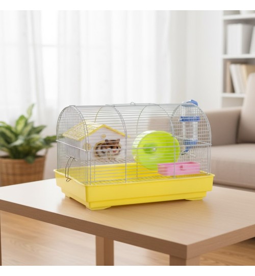 Jaula modelo 157 Astorga para pequeños roedores. Diseño en amarillo. Dimensiones: 23x17x24,5cm