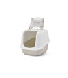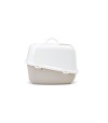 Arenero Nestor Jumbo cubierto con tapa y asa de transporte. Blanco-cool grey. Tapa extraíble. Filtro de carbón activo para neutralizar olores. Medidas: 66.5x48.5x46.5 cm