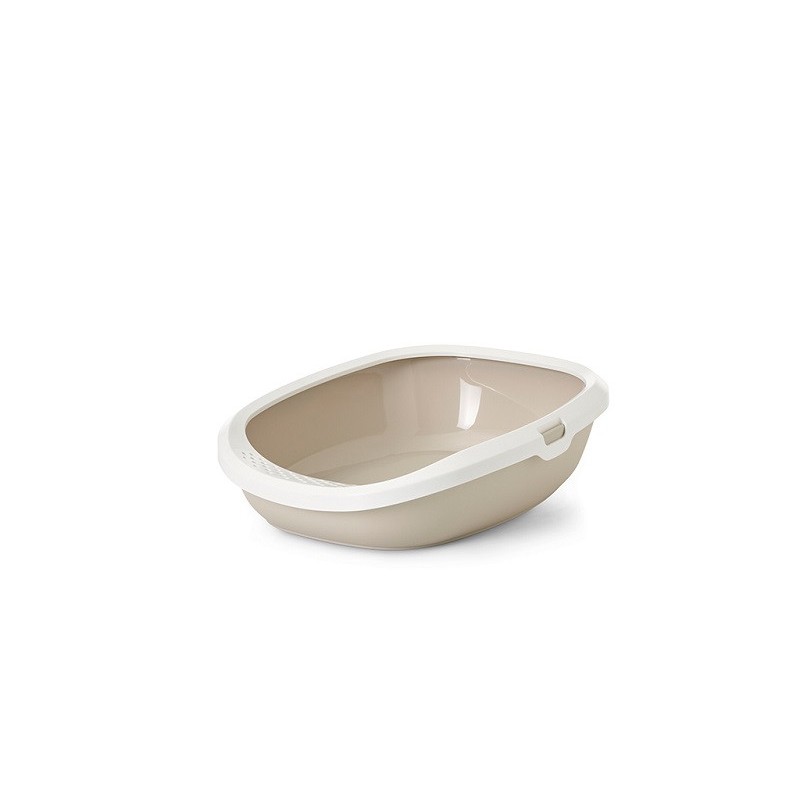 El arenero aseo Gizmo Large blanco y mocha (color café mocca) es un arenero descubierto con marco exterior para una mejor higiene. Sus dimensiones son 52x39,4.5x15cm