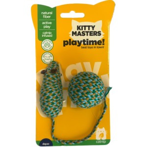 Ratón con pelota de sisal verde de sisal para gatos Time to Play Kitty Masters.45x38x20 cm