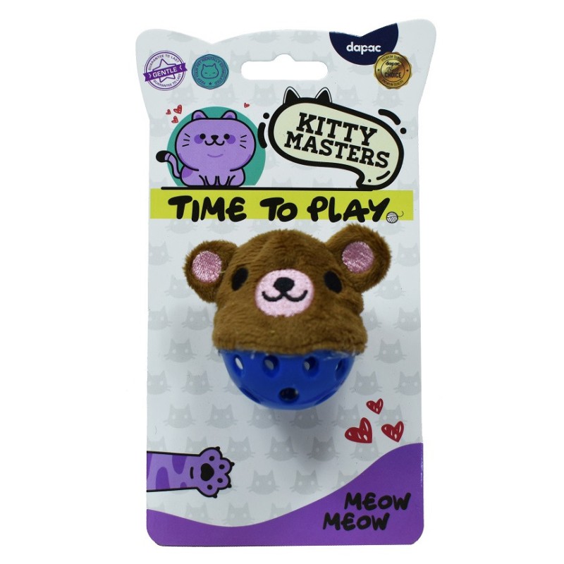 Pelota azul con oso marrón Time to Play Kitty Masters. Contiene catnip. Dimensiones 38x33x35 cm