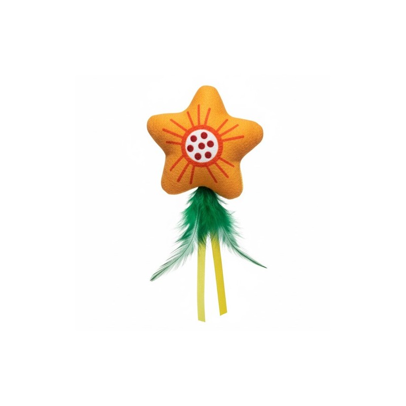 Peluche ligero con forma de estrella pensado para caza indoor: fácil de patear, perseguir y transportar. Aúna catnip en el interior y matatabi (silvervine) para un doble estímulo olfativo, y suma colas (pluma + cintas) que despiertan el instinto predador. Diámetro aprox.: 8 cm.