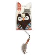 Peluche con forma de búho, relleno de catnip + matatabi para doble estímulo. Ligero y de durable fiber, incluye cola con cordón, cuentas de madera y pluma natural que potencia la caza indoor.