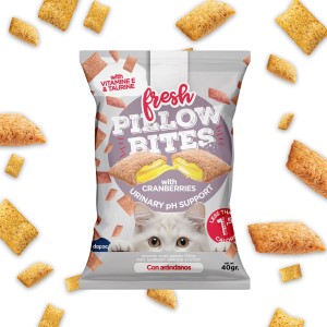 Sabrosos y crujientes bocados con acidificador de orina para ayudar a controlar el pH de la orina y prevenir la formación de cristales de estruvita. Enriquecidos con arándanos, vitamina E y taurina, estos snacks son una solución deliciosa que también cuida. Peso: 40gr.