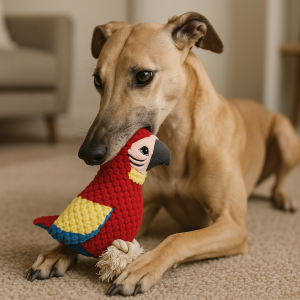 El Guacamayo Rojo es un juguete de peluche diseñado para perros, perteneciente a la colección Playtime de Doggy Masters. Este colorido compañero de juegos destaca por sus vibrantes colores rojo, amarillo y azul, con detalles de pico y ojos bordados que lo convierten en una pieza divertida y segura. Sus dimensiones son de 25 cm de altura y 20 cm de ancho aproximadamente.