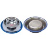 Comedero en acero inoxidable. Base antideslizante para evitar se derrame el contenido. Recubrimiento silicona azul. Diámetro: 22 cm.