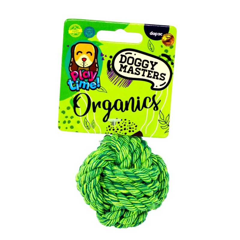 Juguete de yute en forma de pelota perteneciente a la gama Organics de Doggy Masters. Está especialmente diseñado para perros, mide 5 cm y pesa de 40 a 50 g.