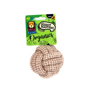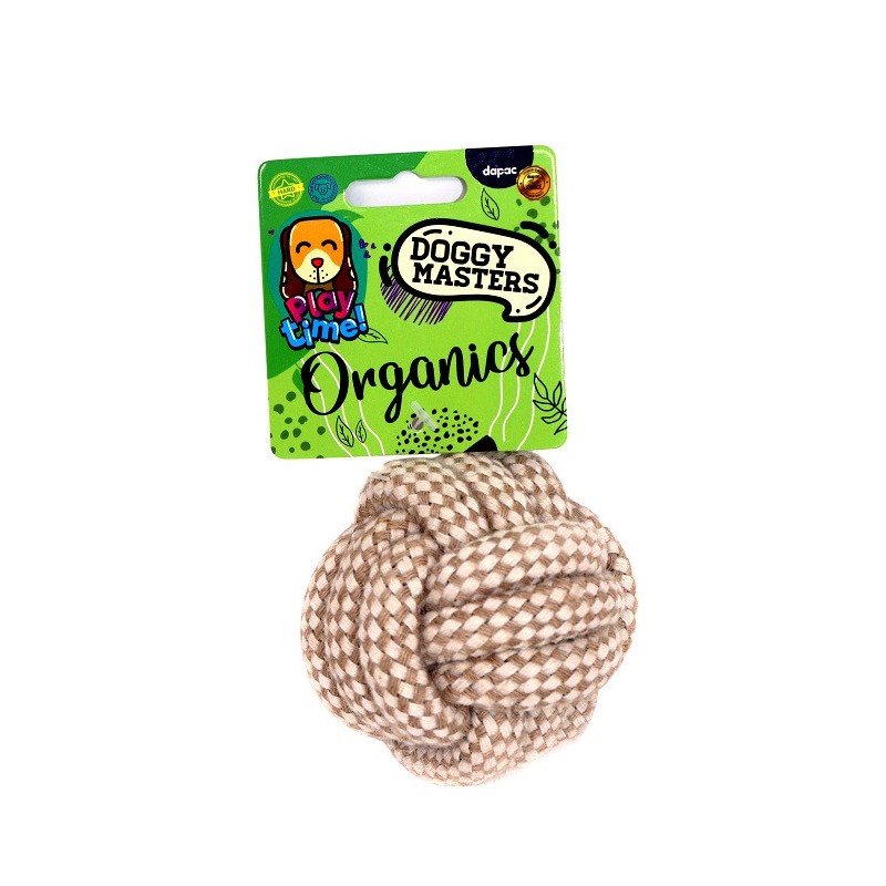 Pelota de yute color natural perteneciente a la gama Organics de Dogy Master. Mide 10 cm, pesa 190-200 g y es un juguete diseñado especialmente para perros.