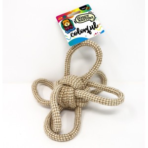 Pelota de yute en color natural 6 nudos. Pertenece a la colección Organics de Doggy Masters, mide 23 cm y pesa unos 100-110 g. Es un juguete diseñado especialmente para perros.