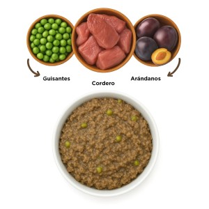 - • Enriquecido: Con aceite de pescado, guisantes y ciruelas.