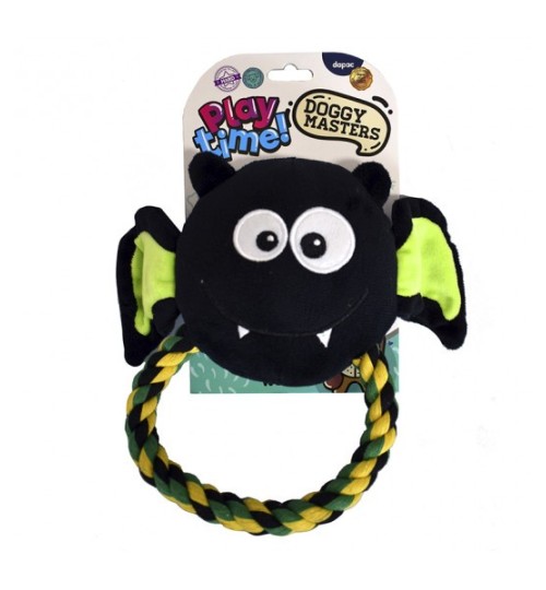 Murciélago aro tirador naranja Play Time Doggy Masters. Juguete de peluche para perros. Cuerpo suave y agradable al taco con cuerda trenzada. Seguro y resistente. Medida: 20 cm. Con sonido al presionar.