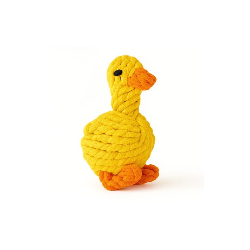 Juguete con forma de pato de fibra natural y nudos resistentes. Ideal para morder, lanzar y tira y afloja; ayuda a la higiene dental gracias a la fricción de la cuerda. Recomendado para perros pequeños y medianos.