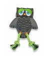 Búho de peluche + cuerdas para tirar, morder y sacudir. Textil suave con costuras de refuerzo y patas de cuerda con borlas.