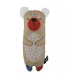 Juguete de peluche suave con forma de oso y botella de plástico en el interior que cruje al presionar. Su diseño alargado es fácil de agarrar y transportar, con acabados bordados y orejas mullidas. Ideal para sacudir, buscar y traer y masticación suave. Medidas aprox.: 23,5 × 9 × 6,1 cm.