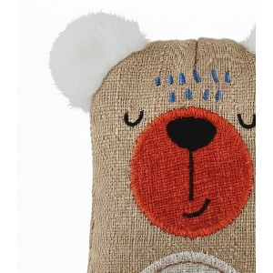 - Colores: beige con orejas blancas; patas azul/rojo; bordados en negro, rojo y azul.